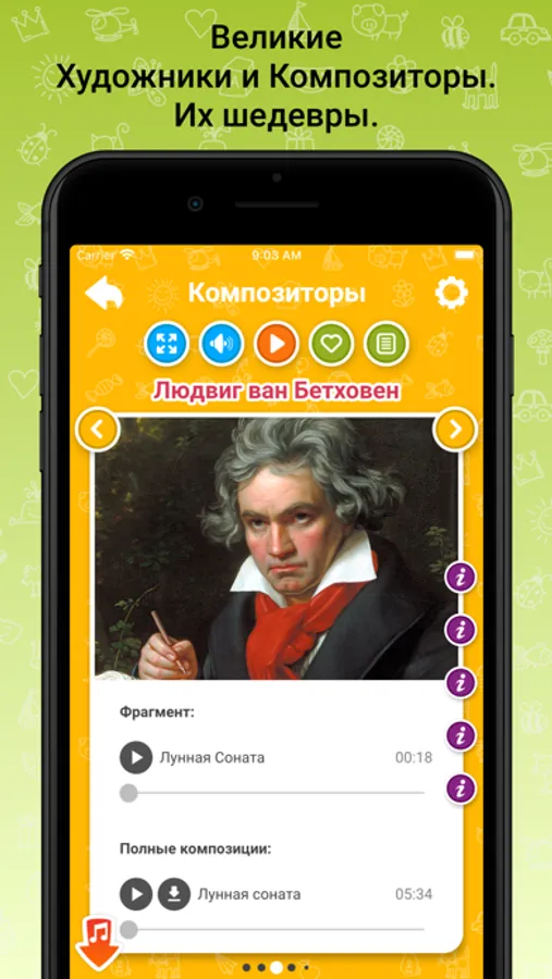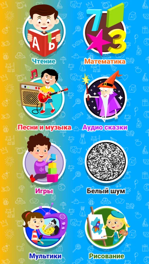 Карточки, познавательные картинки и фото, звуки и видео, самая интересная информация и факты, 3D модели и дополнительная реальность. Только полезные и развивающие игры, не приводящие к игромании и детской зависимости. Детские песни, аудио сказки, успокаивающая и классическая музыка, белый шум. Самый удобный плеер для прослушивания. Все самые популярные мультики, доступные только с разрешения родителей или опекунов.