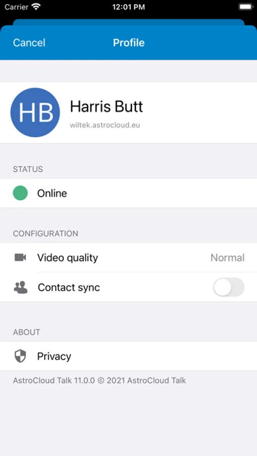 Usa AstroCloud Talk per effettuare chiamate audio o video individuali o di gruppo, creare o partecipare a conferenze web e inviare messaggi di chat. Tutte le comunicazioni sono completamente crittografate e mediate dal tuo server, fornendo il massimo grado di privacy possibile.