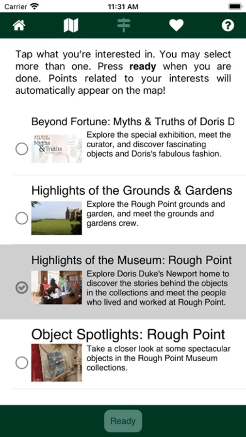 Rough Point Museum tours: Use the interactive app to find out more about the rooms, collections, and people of Rough Point, the Newport home of Doris Duke. Watch behind-the-scenes videos related to the caretaking of the collections, virtually step inside spaces not on the tour path, and encounter special object highlights.