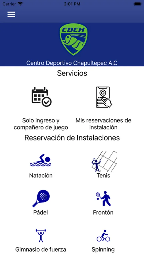 Aplicación para usuarios del Centro Deportivo Chapultepec, esta aplicación permite realizar reservaciones de instalaciones deportivas, actividades y consultar las reservaciones realizadas.