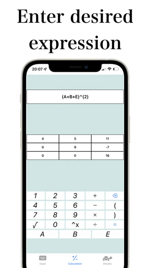 2. Next, tap the calculation tab at the bottom of the screen, enter the equation on the calculation screen, and press "=" to get the result.