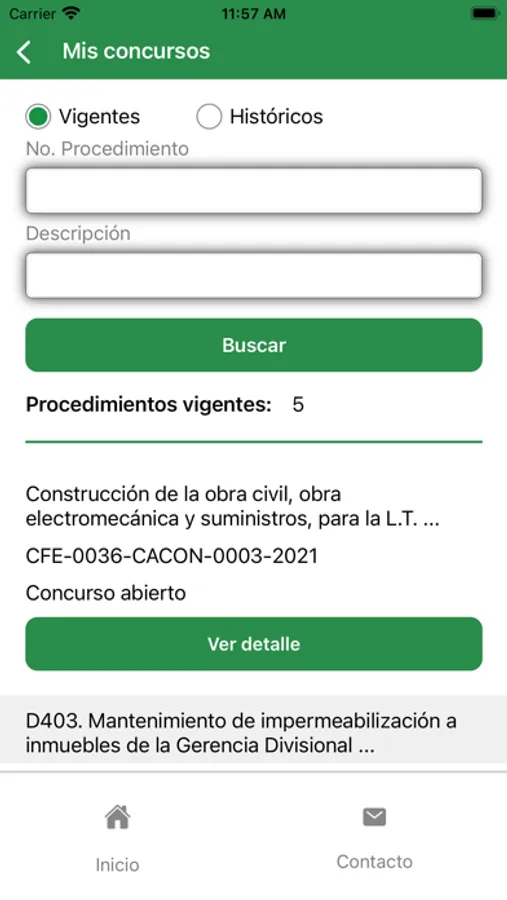 Aplicación para difundir a la ciudadanía los procedimientos de contratación de la Comisión Federal de Electricidad (CFE) y consultar los procedimientos en los que participan los proveedores o contratistas inscritos en el Sistema Electrónico de Contrataciones (SEC) de la CFE, en esta aplicación podrás realizar las siguientes acciones:
