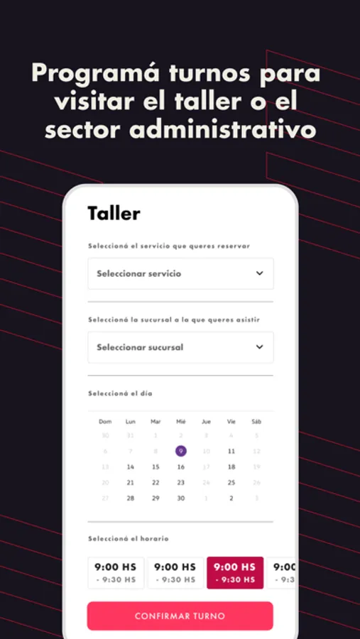 Solicitá turnos para taller, administrativos o para ventas. Además tenes toda la info de tu auto plan y de tu vehículo en tu smartphone