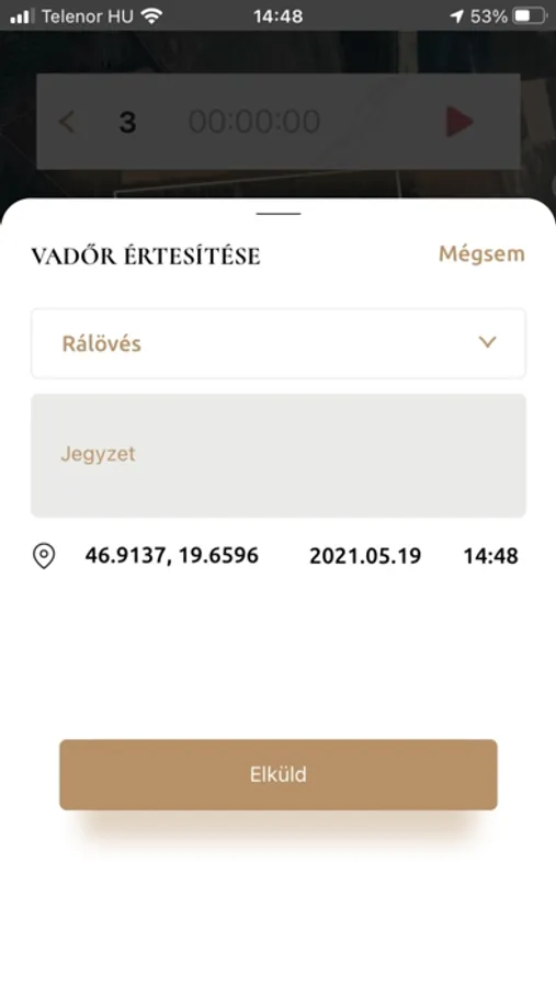 6. Vadőr értesítés - Értesítse a hivatásos vadászokat a lőtt vad vagy a rálövés pontos helyének továbbításával!