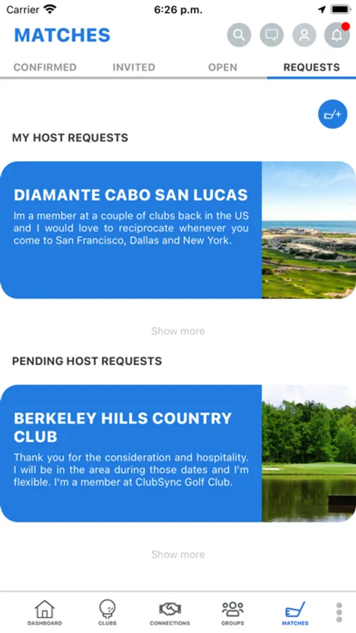 The first and only digital platform dedicated to enhancing experiences within the golf community. You could connect to members, find clubs, organize matches or schedule visits to other clubs.