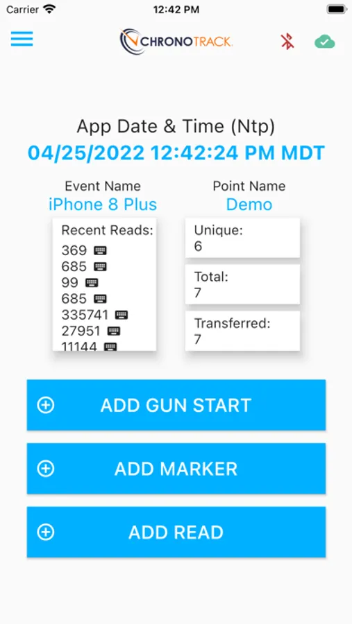 ChronoTrack mobile race timing solution, supports keyed tag reads as well as an integration with ChronoTrack Hardware for time syncing.