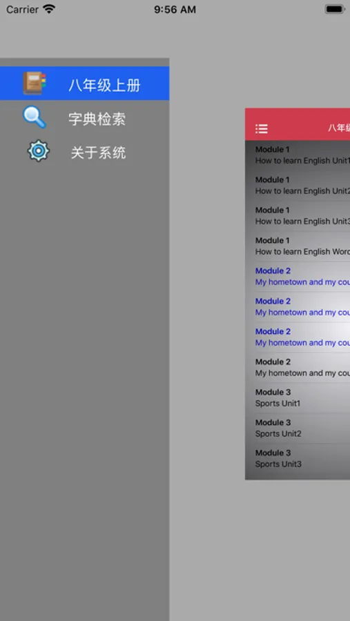 此App包括外研版《新标准初中英语八年级上册》全部课程内容。