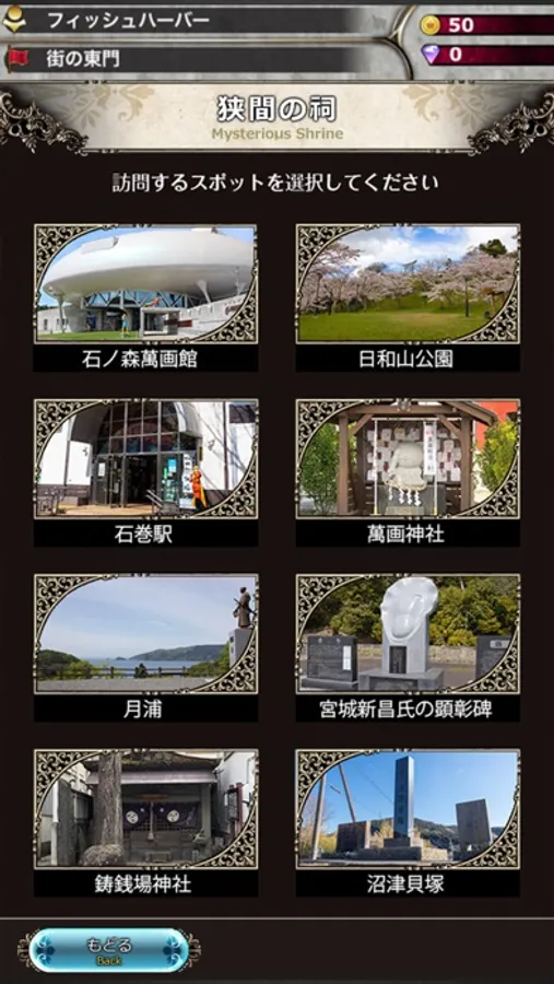 The locations specified by the game include sightseeing spots and public facilities in Awaji Island.