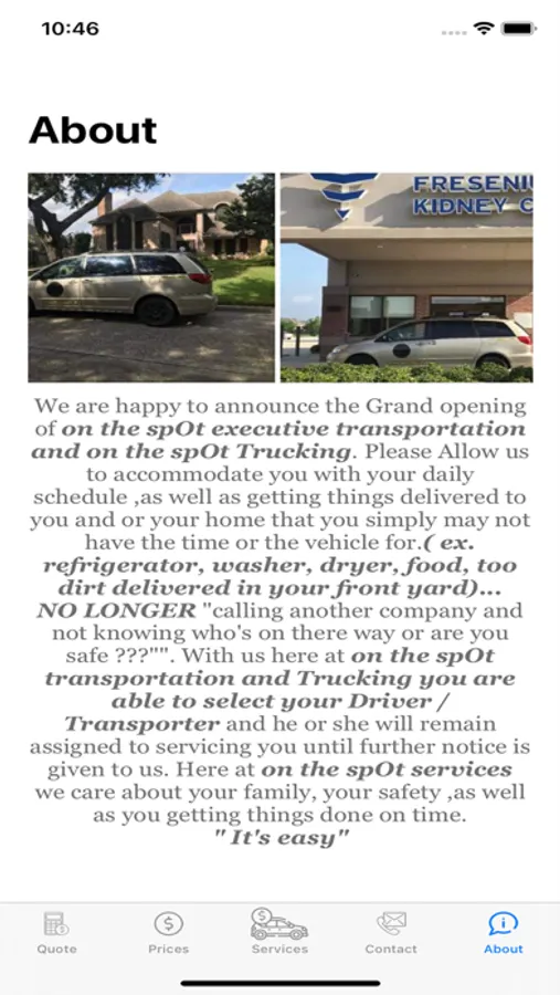 NO LONGER “calling another company and not knowing who’s on their way or are you safe ???”. With us here at On The spOt executive Transportation and On The spOt Trucking you are able to select your Driver /Transporter and he or she will remain assigned to servicing you until further notice is given to us. Here at On The spOt Services, we care about your family, your safety, as well as you get things done on time.