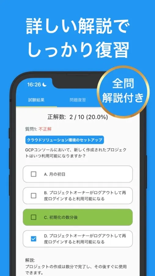 - 詳しい解説を一問ごとに確認することができる為、通勤時間などを利用した学習、振り返りに最適