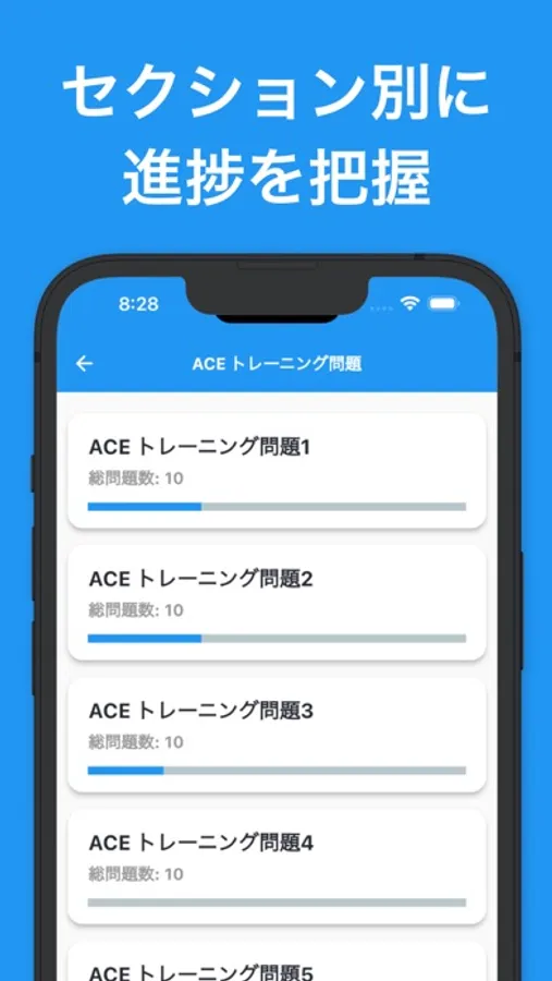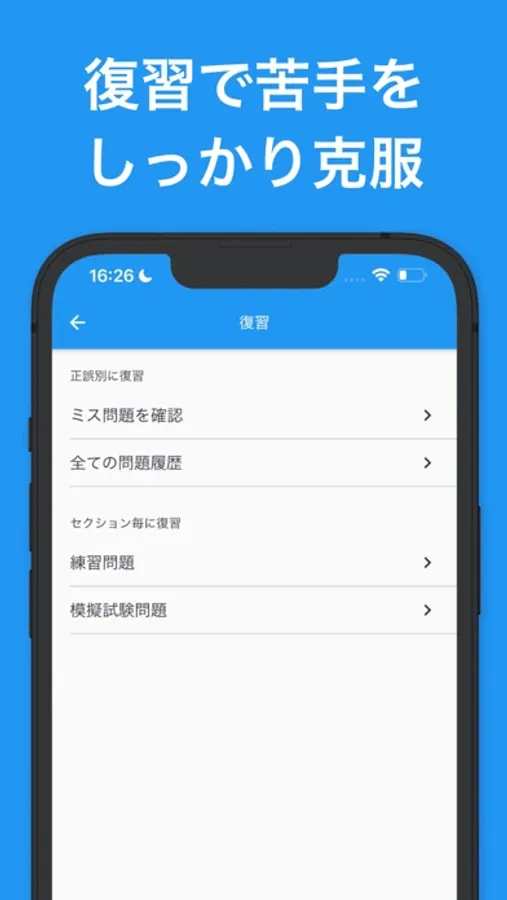 - 10問ごとに挑戦可能な問題集を複数選択可能