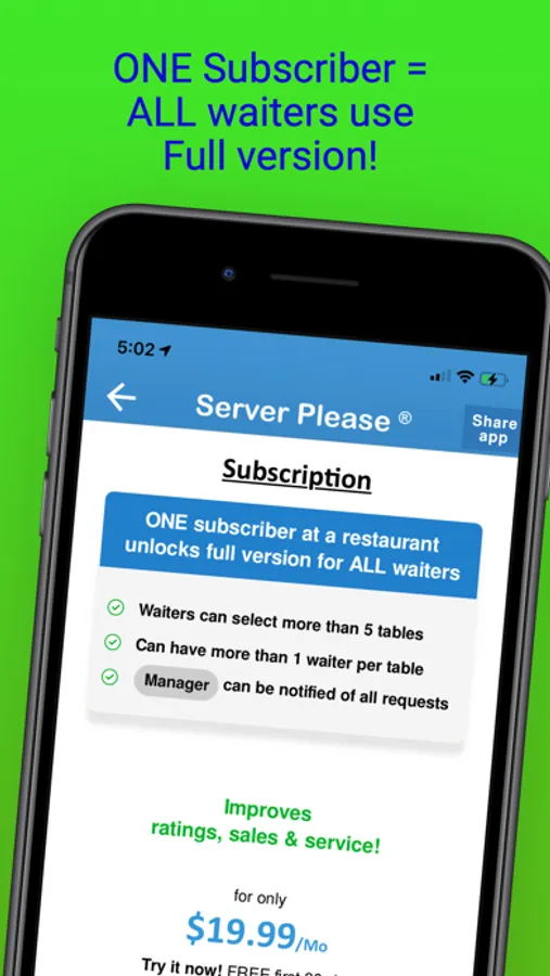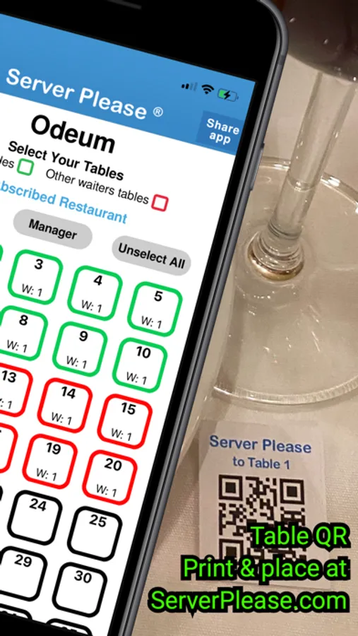 Free version waiter can select up to 5 tables.