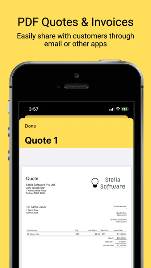- Emailing or sharing of PDF quotes, invoices and receipts