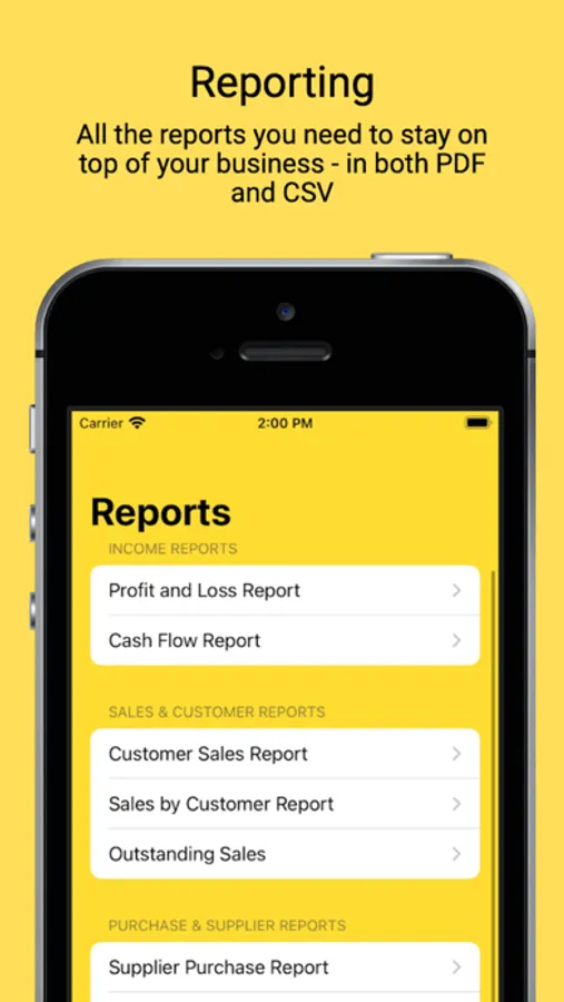 - Reporting covering cash flow, profit, sales taxes and statements for customers and suppliers