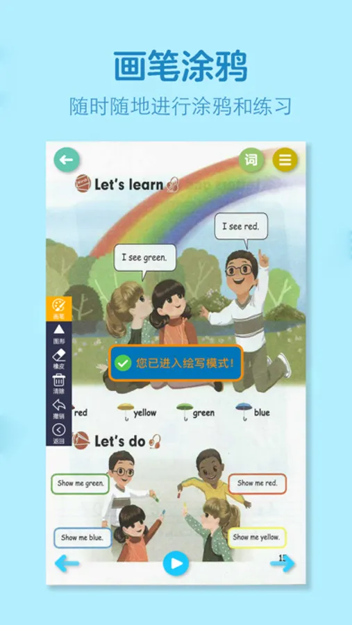 【2】画笔功能,全屏涂鸦让学习更加的有趣让学习更加高效率。完全同步最新发行教材,绝无缺漏页现象。