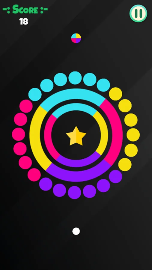 In this game there are a lot of different shapes and color switching circle.Tap tap to jump with the ball and go through the shapes with same color and avoid ball to touch with different color because if ball touch with different color then level failed.In this game the ball will keep on changing color with every moving obstacles after the sometime the obstacles are going to get more complex with different speeds, shapes and color combination etc.
