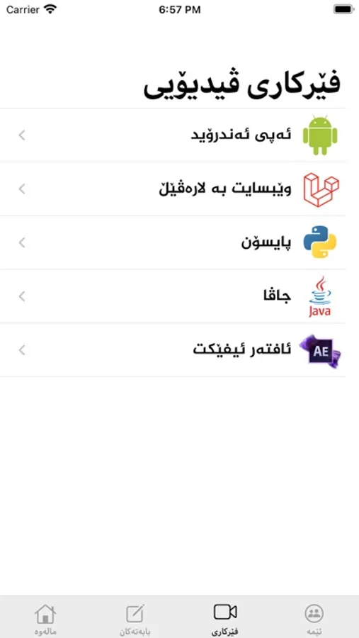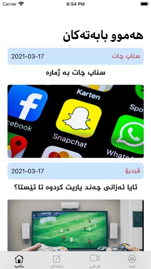 ئهم ئهپه له بهشی ههواڵه تهكنۆلۆجیهكان و فێركاریهكان پێكهاتوه.