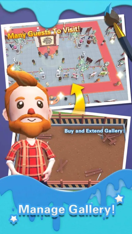 -Manage gallery with a goal: show your paintings and earn money from guests! Expand your gallery!