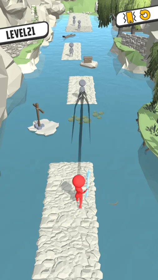 Hit the character with spear and seize her soul! Make your way through a temple path full of traps without dying.