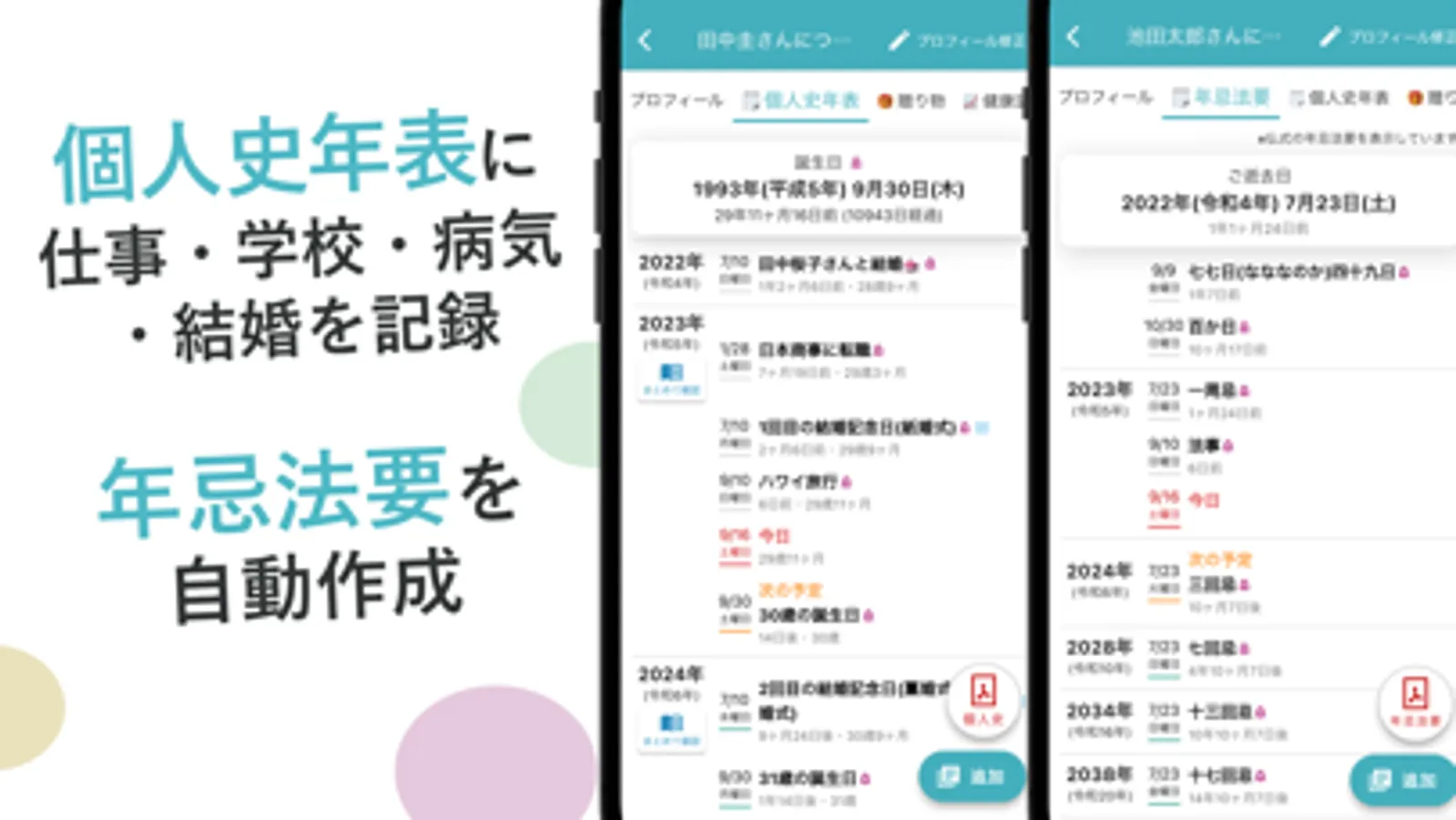 ・生年月日を入力すると年表自動作成