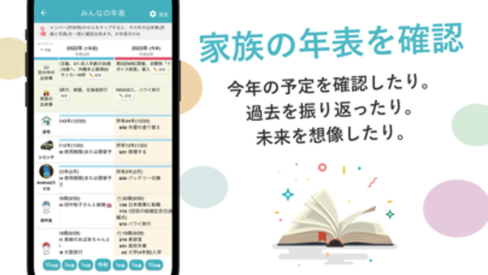 ・「みんなの年表」機能で、家族の予定を一覧表示