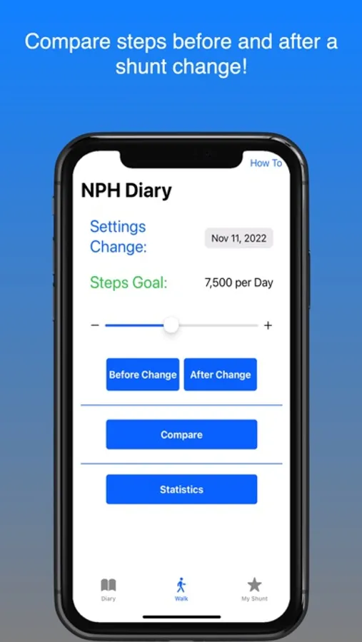 A diary for patients who suffer from normal pressure hydrocephalus and have underwent shunt placement. This allows for journal entries to indicate changes in gait and walking, document symptoms, and also keep track of changes in shunt settings.