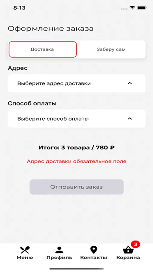 Приложение сервиса доставки еды НямНям. Позволяет заказать пиццу, роллы и многое другое с доставкой в Выксе.