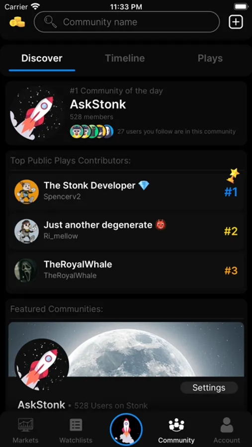 Stonk communities are a way for you to stay in the loop with stock DD, memes, and more! Join or create communities for your favorite stocks to post useful information and memes.
