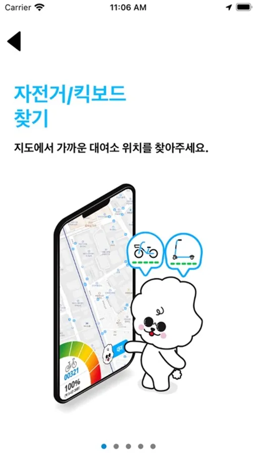 1. 앱에서 대여할 수 있는 전기자전거, 전동킥보드를 찾아보세요.