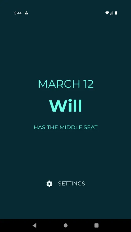 If you have three or more kids you know that there is constant fight for who has to sit in the middle car seat during your daily commute or a long car ride. This app helps you relieve that tension by assigning the middle seat to a child for a given day. Kids will never be assigned two days in a row and you can easily shuffle the schedule if necessary.