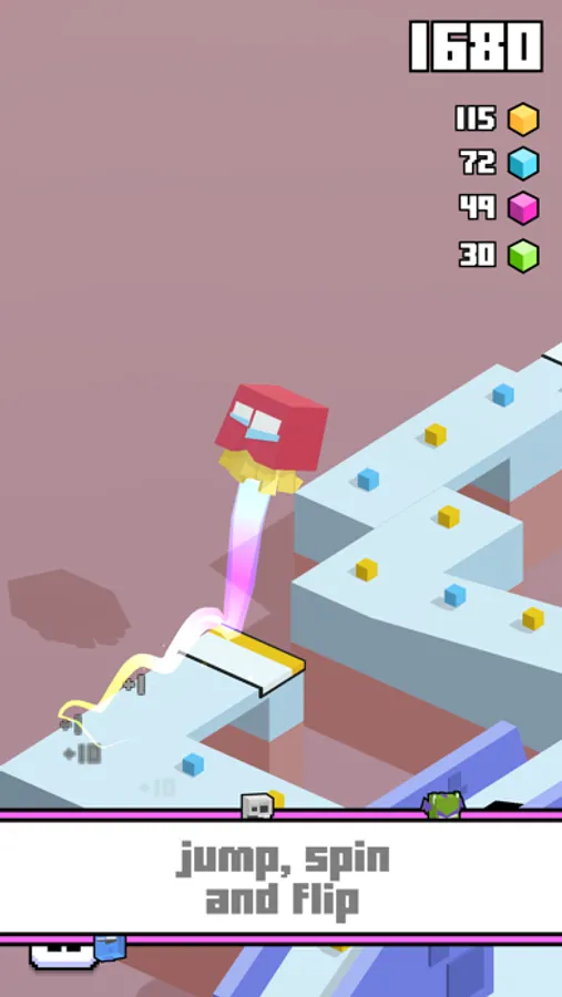 “PXL” is the first character you’ll meet in this adventurous endless runner. His happy bright color grabs your attention, and he’s hungry for pixel points. And more friends.