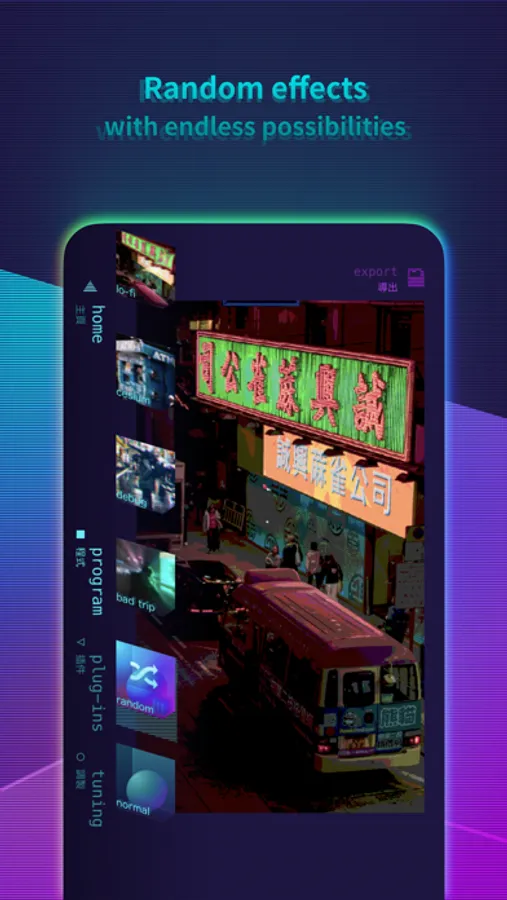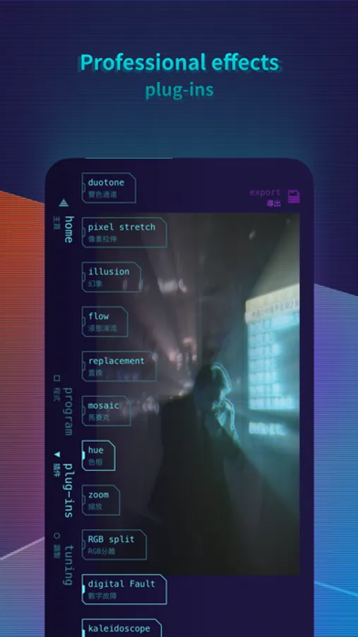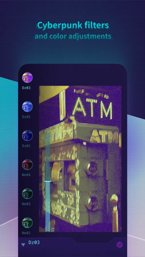 ⊙ Multiple types of cyberpunk filters and color adjustments