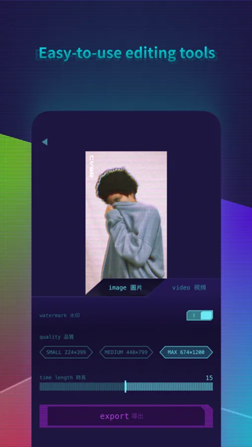 Cybr is a professional cyberpunk photo and video artwork editor. You can use it to quickly turn your photos or stories into cyberpunk artwork.