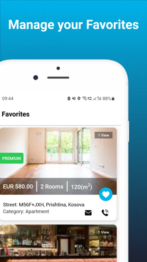 − Keep an eye on interesting properties (houses or apartments) with a personal favourite list.
