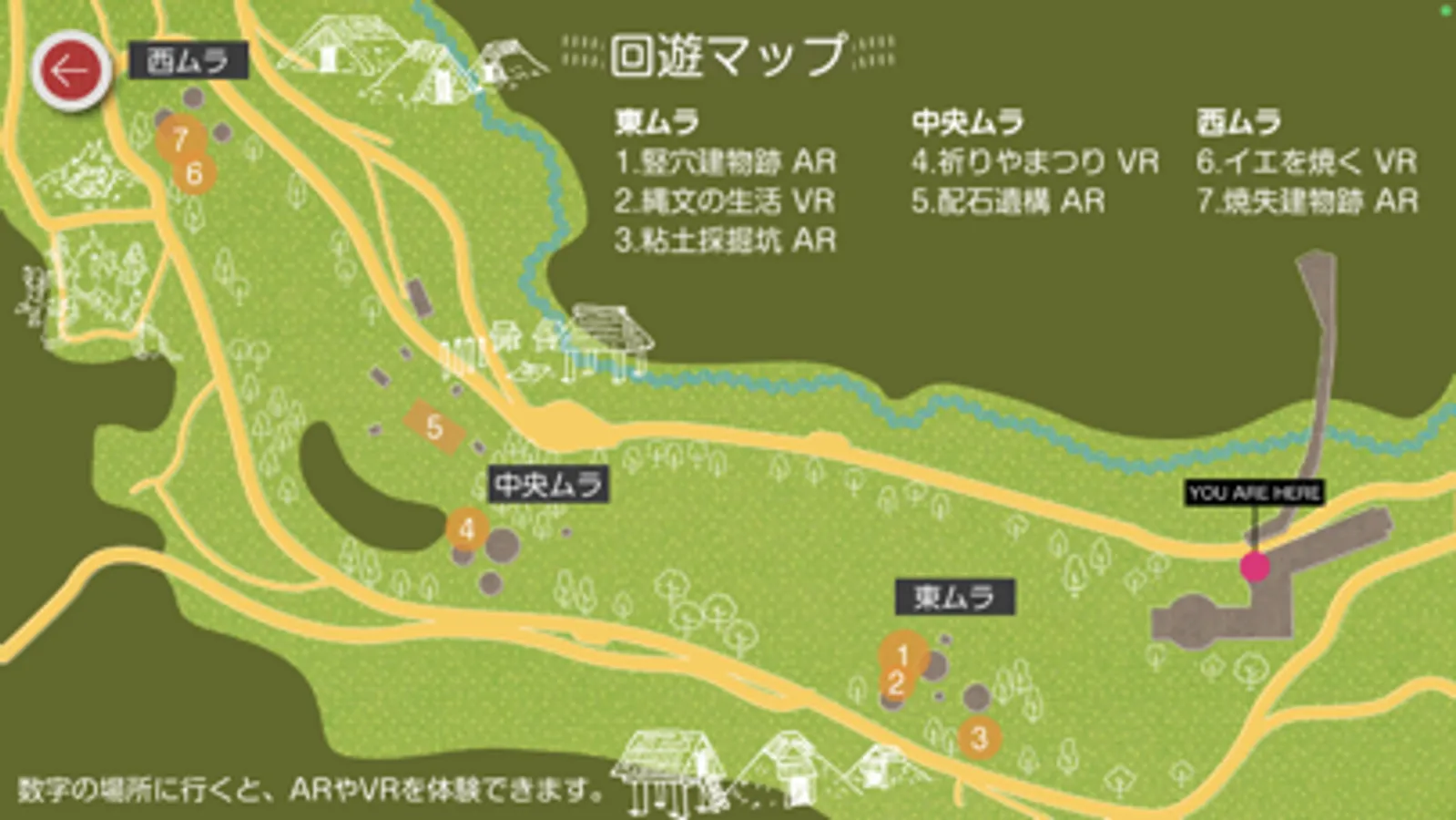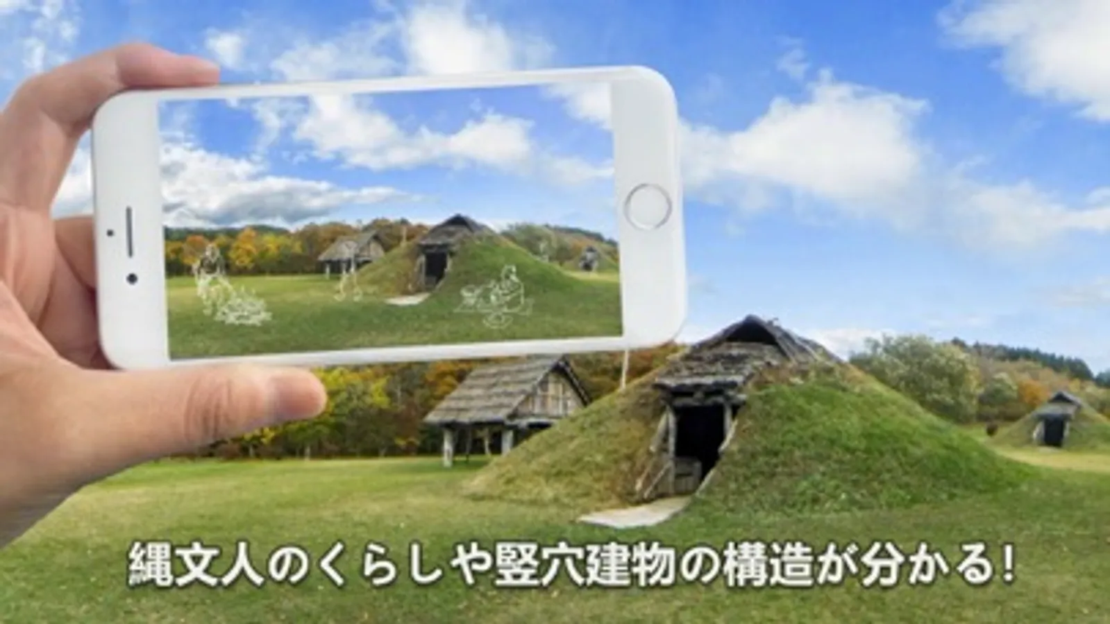 This is the guide application for the Goshono Jomon Site located in Iwate prefecture. This application will explain the ruins of pit houses built 5,000 years ago in the Goshono Village and the lives of the Jomon people. Learn more about the Goshono Jomon Site with 360-degree panoramic pictures and AR content.