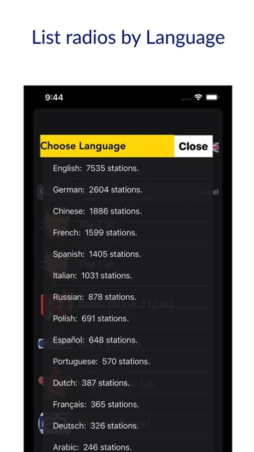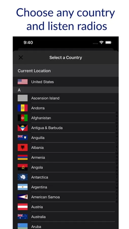 We are making your task easier : Just tap on any country and get loaded with the radios.
