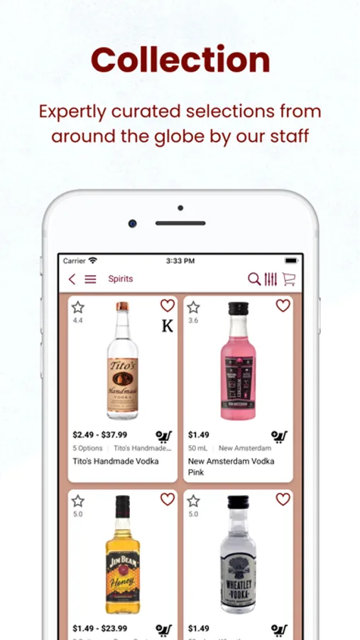 With the App you can browse for the wines & spirits available in the store, and also order a delivery or pickup.
