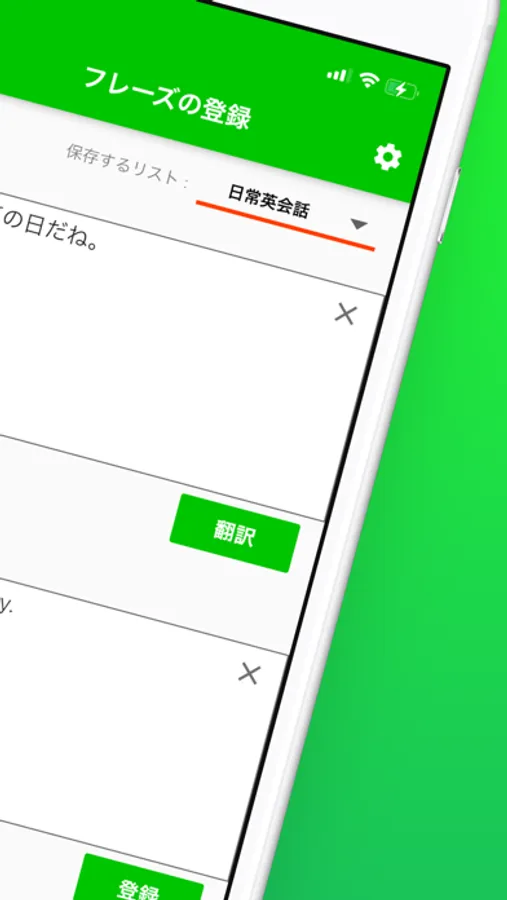 2.その英語のフレーズ、単語をそのままアプリに保存できます。