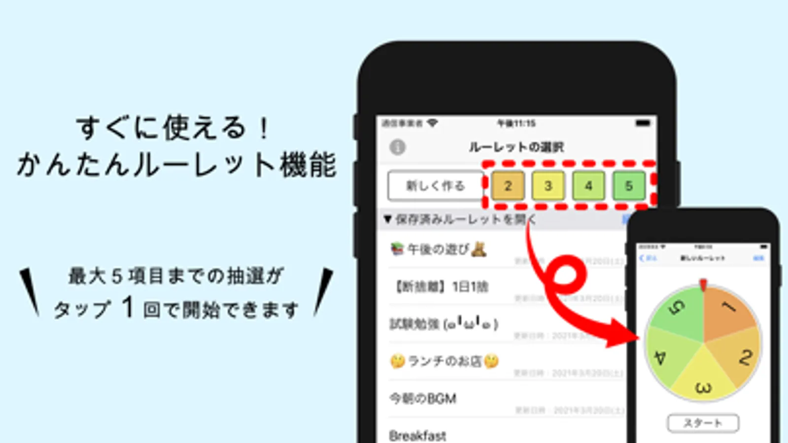 ・一度抽選した項目を非表示にして、当たりが重複しないようにできます。