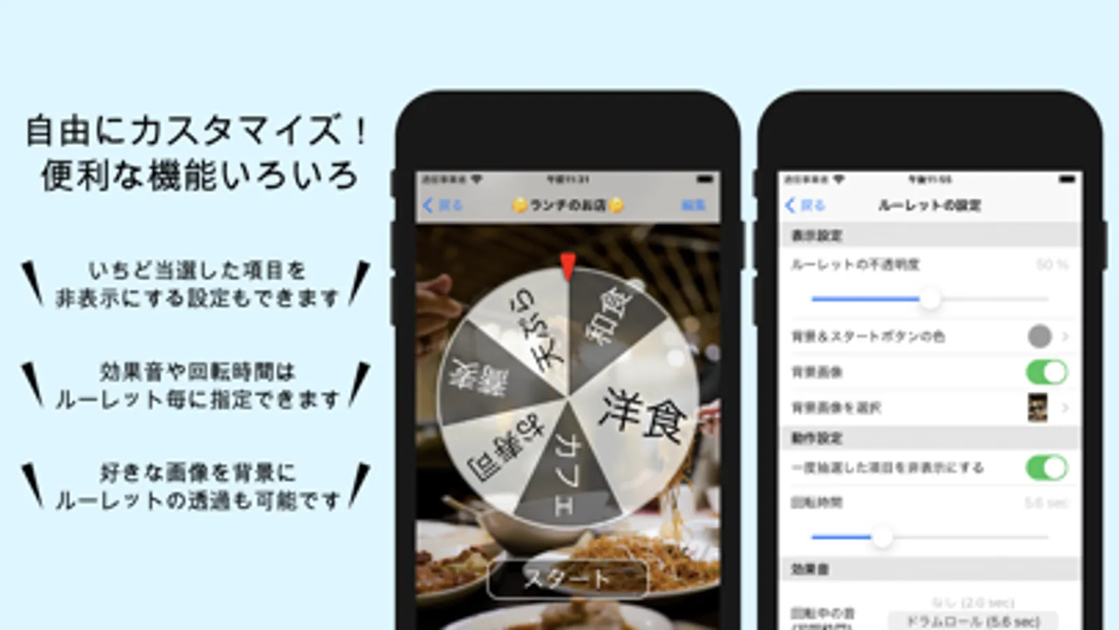 ・ルーレット項目やボタンの色を自由に設定可能です。