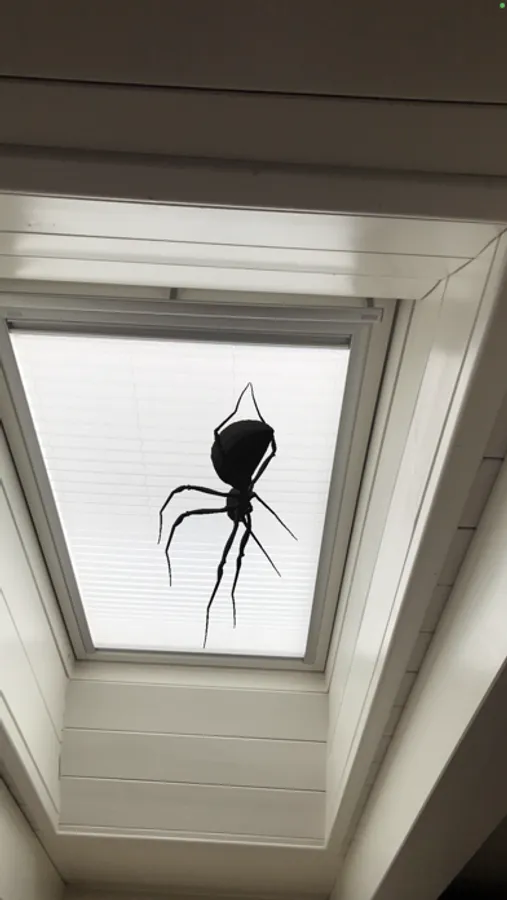 A spider is hanging behind you. Let's find it.
