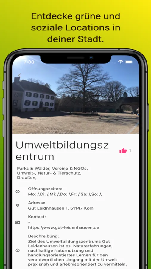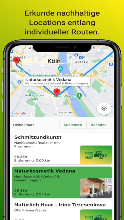 • Locations in Deiner Nähe: Aktiviere Dein GPS-Signal und erfahre, welche nachhaltigen Läden gerade in Deiner Nähe sind
