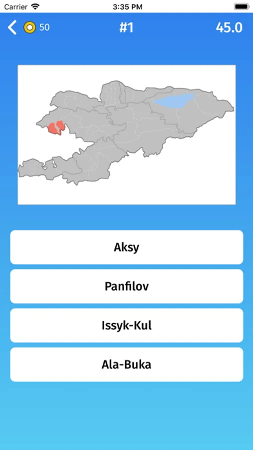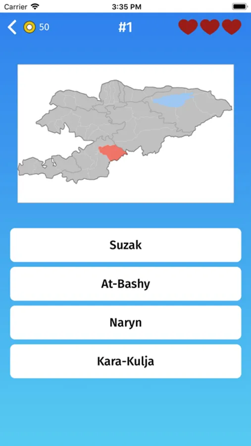 - Multiple choice: guess the provinces of Kyrgyzstan, by selecting one of the variants.