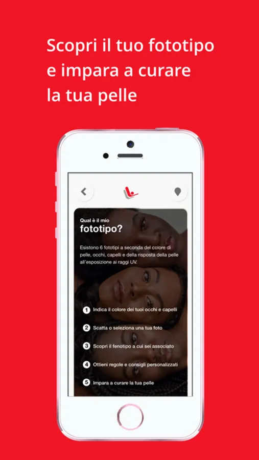 Scopri il tuo fototipo: indica il colore di occhi e capelli, scatta o seleziona una foto, scopri il fototipo a cui sei associato.