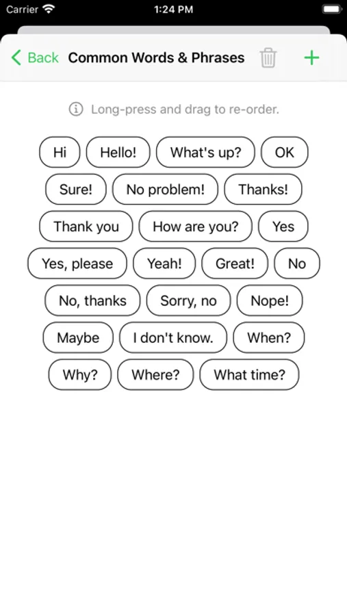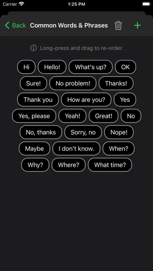 The "common words & phrases" feature makes it simple to carry on a conversation with minimum delay.
