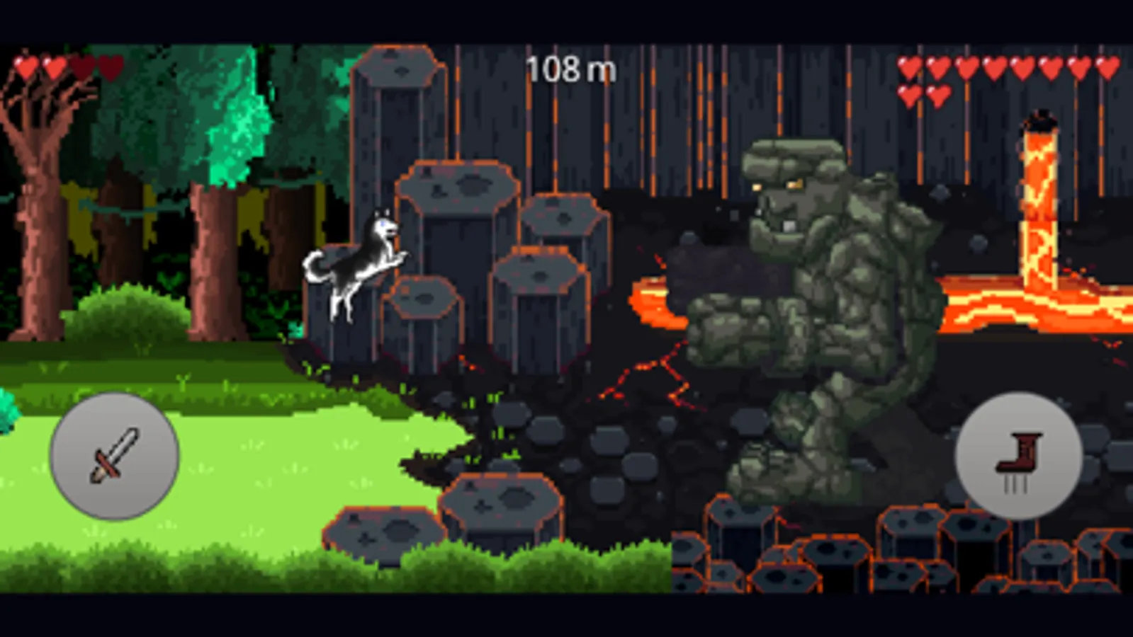 Explore diverse landscapes, from serene plains and enchanting forests to the fiery depths of a volcano, in an endless quest to test your limits.