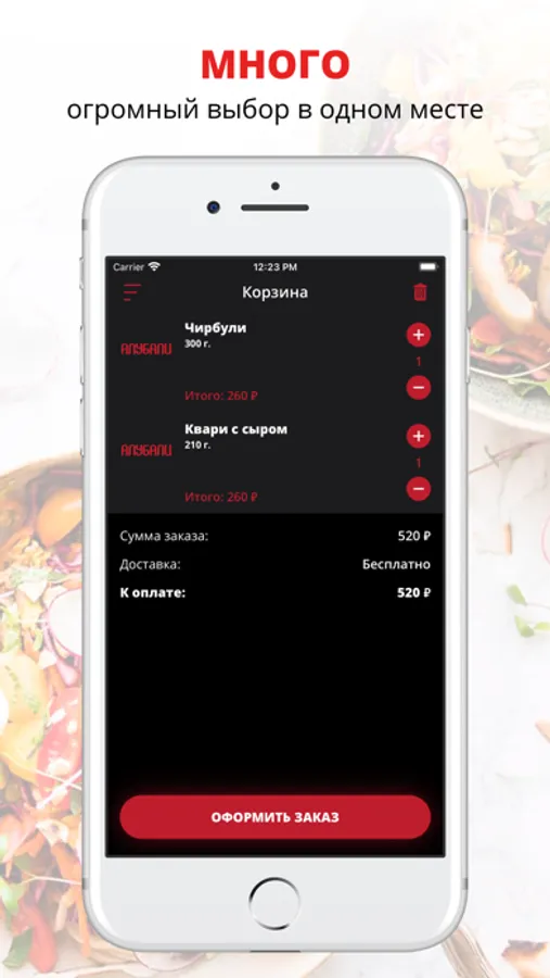 Скачивайте наше приложение, оформляйте заказ и наслаждайтесь любимой едой, где бы Вы ни были! Приятного аппетита!