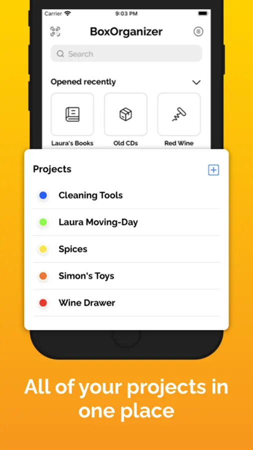 That’s where BoxOrganizer comes in handy. With the app, you can easily add your boxes to a project and start scanning all of your valuable items. Now, when you need something, just search for it and the app tells you, where you’ve put it. That’s how easy it can be.