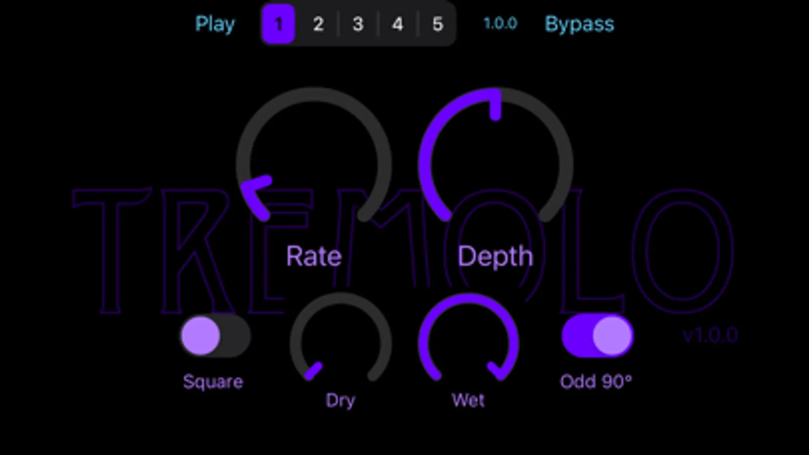 A simple but straightforward tremolo audio effect to give you that nice "Crimson and Clover" feel. The controls are pretty simple and straightforward: