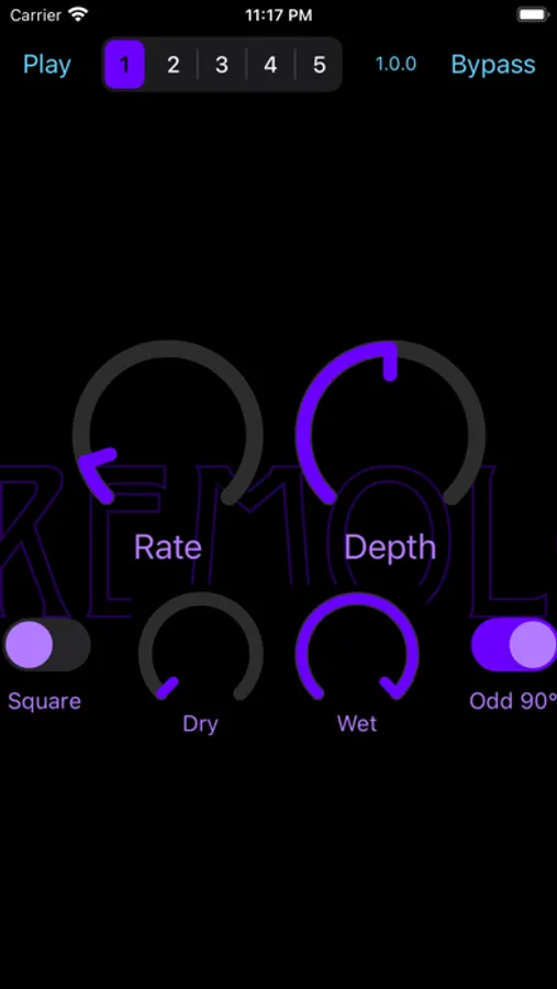 • Odd 90° switch -- affect L and R (odd) channels with orthogonal LFO signals.